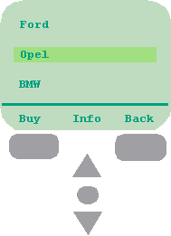 An implementation with two soft buttons may map the BACK command to the right soft button and create an "Options" menu on the left soft button to contain the other commands.