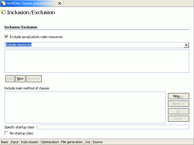 ![]() Figura 19. Selección del fichero jxeLinkOptions ![]() Figura 20. Ventana Inclusion/Exclusion ![]() Figura 21. Añadir recursos