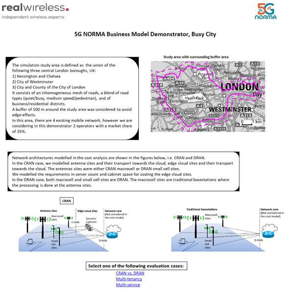 Finally, the fourth demonstrator focus on the evaluation of business aspects of 5G NORMA through a web-based platform. This demonstrator was developed by Real Wireless (RW).